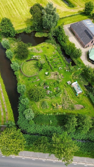 De tuin heeft zich snel ontwikkeld. Paadjes, boompjes, veel bloemen, een prachtig labyrint en her en der groente. Je kunt aardig op ontdekkingsreis door de tuin.