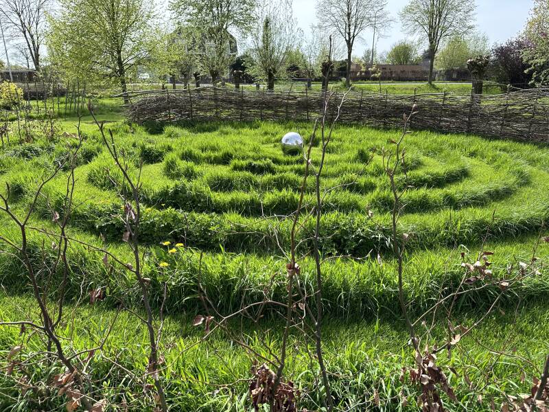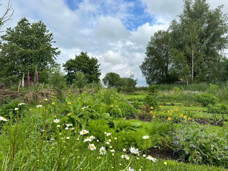 De tuin heeft zich snel ontwikkeld. Paadjes, boompjes, veel bloemen, een prachtig labyrint en her en der groente. Je kunt aardig op ontdekkingsreis door de tuin.