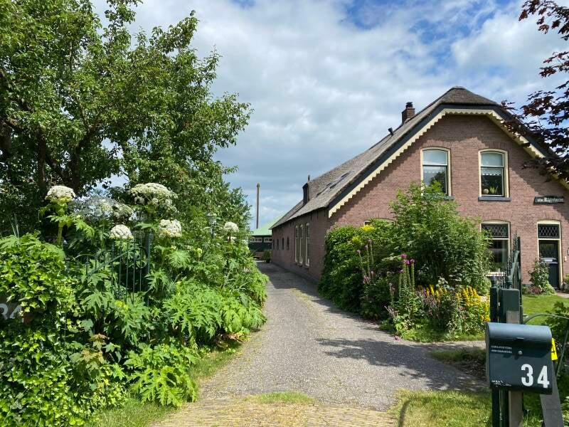 Samen met Wim woon ik aan het Weijland in Nieuwerbrug in een voormalige boerderij. Ons terrein is omzoomd door sloten. Aan de overkant van de weg loopt de Oude Rijn die door de eeuwen heen haar klei heeft afgezet op de oevers. We tuinieren dus op rivierklei. Voedzaam maar niet zo licht te bewerken.