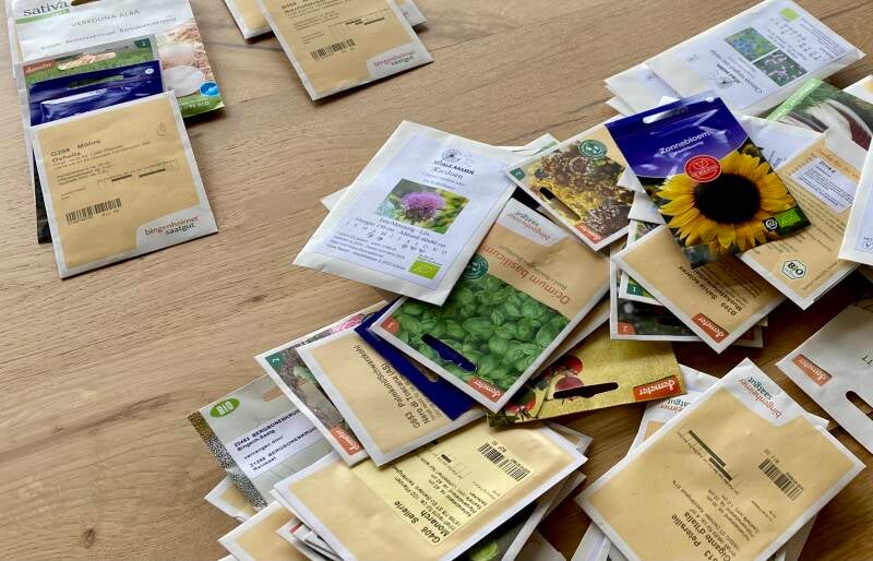 Afgelopen week kon ik de bij Velt bestelde zaden + pootgoed (aardappels en sjalotjes) ophalen. Ik wist niet dat het zoveel was. In november vulde ik de bestellijst in. Op aanraden van Esther van de Bor van de Hortus Populus in Bodegraven ben ik lid geworden van Velt. Velt is de Vereniging voor ecologisch leven, koken en tuinieren die al meer dan 45 jaar een duurzaam leven in huis, tuin en keuken promoot in Nederland en België. Als lid van de vereniging kun je in november ecologisch geteelde zaden bestellen. Op een ledenbijeenkomst kun je de bestelling ophalen en met andere tuiniers ervaringen uitwisselen. Nou... ik kan aan de slag!