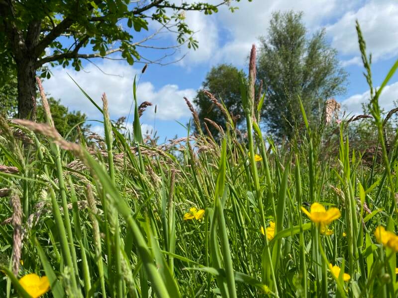 Ik maai al weken paadjes door het gras. Waar ik niet maai groeit het gras nu tot kniehoogte en door de bloei is het nu nog hoger. Het geeft de tuin een spannend karakter. Je kunt het niet meer overzien, er zijn verborgen paadjes. Zo leuk. Wandelend door het hoge gras zag ik hoe bloeiende brandnetels zeer druk bezochte insectenhotels zijn. Je bent van harte welkom om ook eens rond te komen struinen.