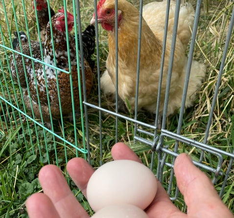 Wim glundert als ik hem de foto's laat zien. We hobbelen de rolstoel naar het kippenhok. "Zie je wel dat je het leuk vindt?" zegt hij met een big smile. Ik moet lachen. Hij is er goed in om beetje bij beetje mijn comfort zone op te rekken. Ja, zo houden we het levendig. Misschien zelfs met kippen. Hun eerste eieren hebben ze in ieder geval al gelegd. Aan de kippetjes zal het niet liggen.