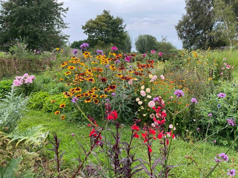 Laatst liep ze door mijn tuin. "Jouw tuin is veel leuker om doorheen te lopen, het is veel spannender dan mijn eigen tuin. Je hebt allerlei kleuren door elkaar en toch is het een geheel met af en toe prachtige arrangementen. Ik ga ook eens kijken of ik wat meer kleur en variatie in mijn eigen tuin kan brengen." Van zo'n opmerking word ik zo blij. Een zeer ervaren plantenkenner en tuinier die zoiets zegt over mijn 'ik doe maar wat' tuin; Ik voel me groeien.